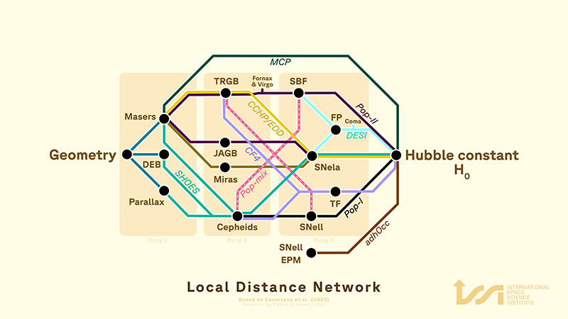 For nearly a century, astronomers have relied on the so-called “distance ladder” to measure the expansion rate of the Universe—the Hubble constant, H₀—by calibrating increasingly distant cosmic objects through a sequence of interlocking steps. This method has delivered tremendous progress, but it also means that uncertainties can propagate along the chain, without the benefit of spreading risk or sharing the load. The H0DN Collaboration therefore adopted a broader mathematical framework, replacing a single measurement path with a Local Distance Network that links many distance indicators simultaneously.
