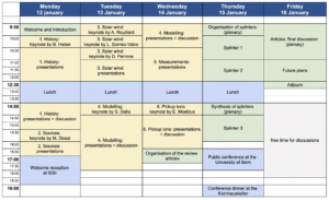 - Thursday at 16:30: Public conference at the University of Bern on “Observations of solar energetic particles in the inner heliosphere: past, present, future” by P. Evenson, B. Klecker and R. F. Wimmer-Schweingruber. The conference will take place in room B7, lower floor (2. Untergeschoss) of the nearby ExWi building, Sidlerstrasse 5, see map. For a detailed floor plan, see plan